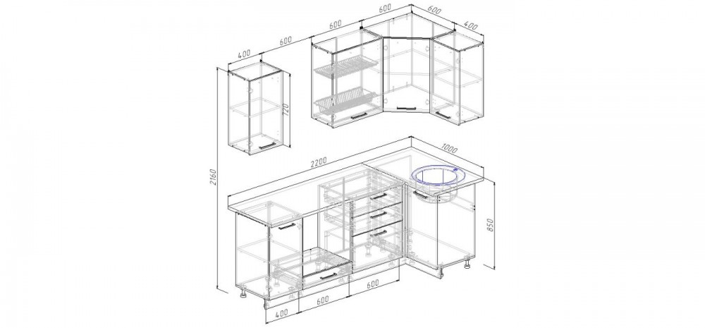 Кухонный гарнитур угловой Антрацит 2200х1000